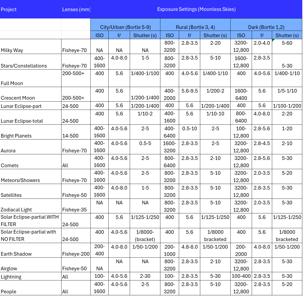 This chart is from THE BEGINNER’S GUIDE TO ASTROPHOTOGRAPHY by