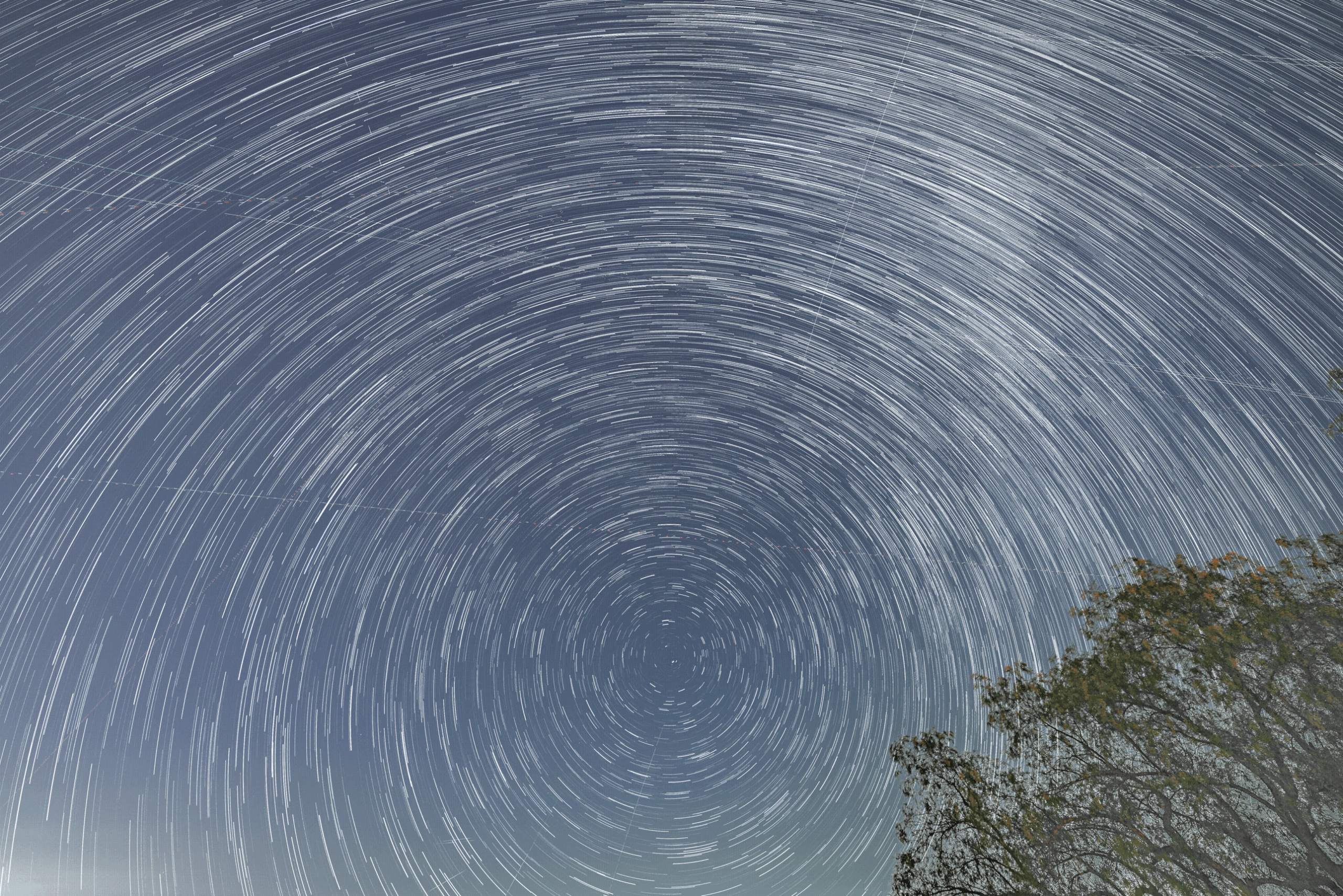 Facing north created circular star trails, while facing south makes arcs. Facing east or west produces slanted star trails. To get a complete circle, you’ll need to focus your lens toward Polaris, true north star, and shoot from that reference point.